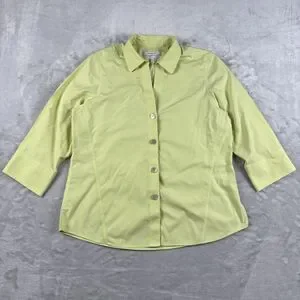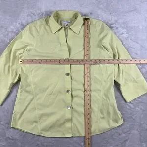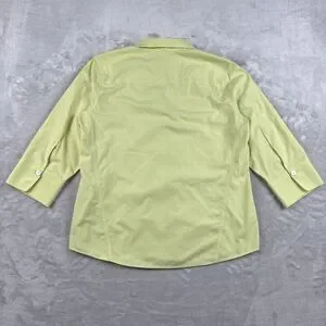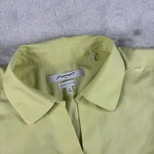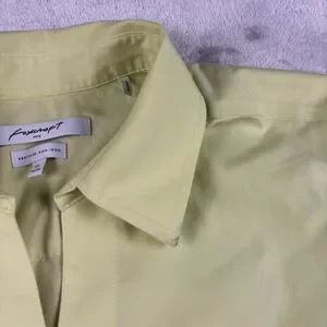 Foxcroft Dress Shirt 3/4 Sleeve Button Up Sz 14 Yellow Cotton Office Casual Top