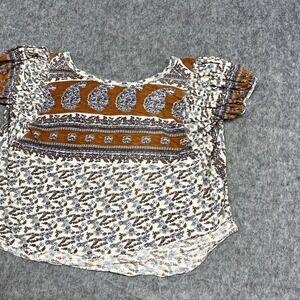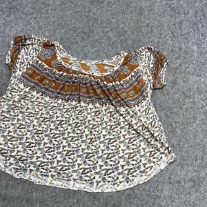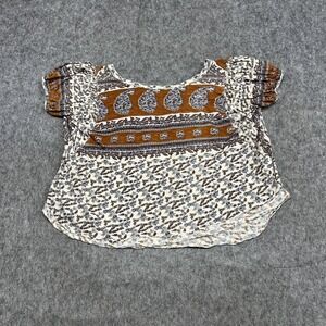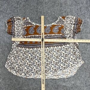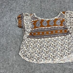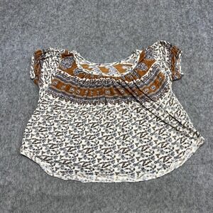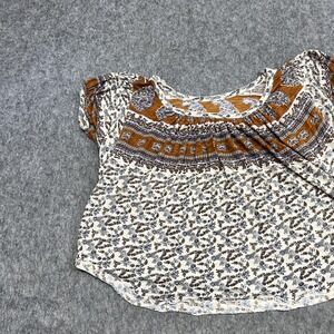 Free People Blouse Womens S Beige Floral Scoop Neck Tunic Top Boho Peasant
