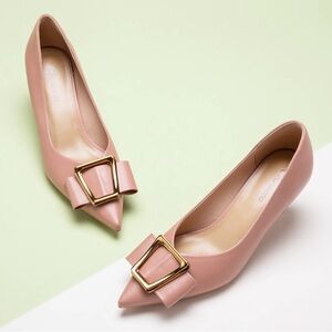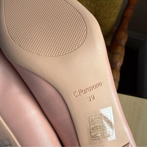 C.Paravano Pink Blush Pink Metal Tie Buckle Kitten Heels Designer Style Olivia Pumps NEW 8.5