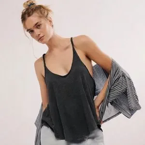 NWT Free People Lo Lo Washed Black Boho Coastal Vacation Swing Tank Oversized S