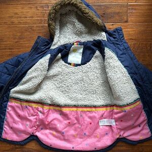 Boden Longline Quilted College Navy Puffer Waterproof Parka Coat, Kids Size 6/7