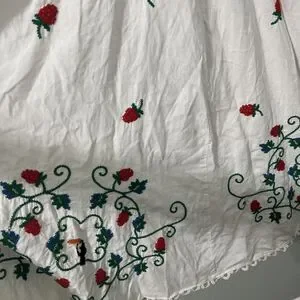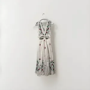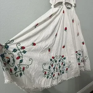 The Farm Rio Cross Stitch Toucan Raspberries Fruit Embroidered Dress in size Small is a stylish and unique A-Line dress for women. This dress features beautiful embroidered accents, a sleeveless design, and a midi length, making it perfect for various occasions. The white color and intricate cross stitch detailing add a touch of elegance to this dress, making it a standout piece in any wardrobe.