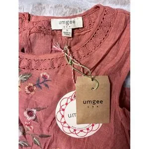 Umgee Womens Embroidered Cold Shoulder Blouse Rust Terracotta Boho Top New