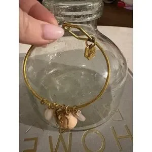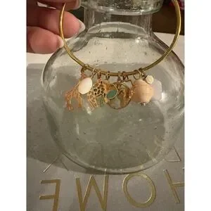 Sseko Designs Brass Charm Bangle Bracelet Giraffe World Bead Accents Safari