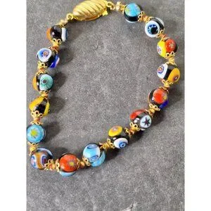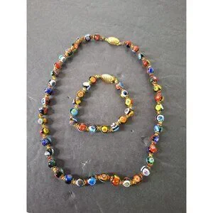 Vintage Original Murano Millefiori Art Glass Bead Necklace & Bracelet