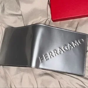 BRAND NEW NEVER BEEN USED Salvatore Ferragamo leather card and key holder with embossed logo. Smooth metallic silver finish. Interior pockets for cards and small essentials. Compact and refined design for everyday carry.