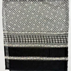 No fabric tag but very soft- would guess 100% polyester or perhaps some rayon / silk blend