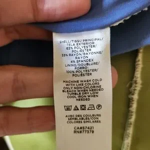 Shell: 63% Polyester / 33% Rayon / 4% Spandex