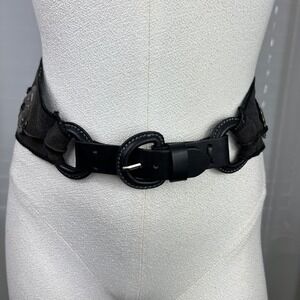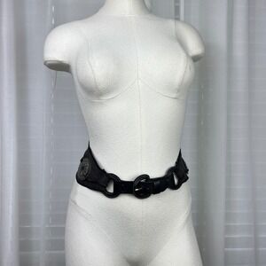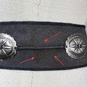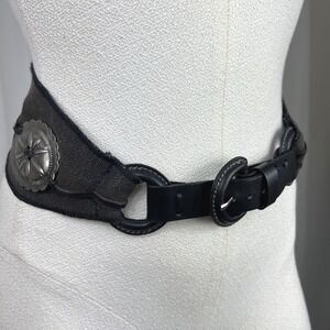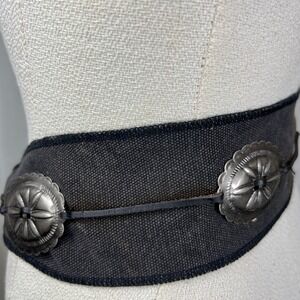 Unbranded Black Canvas Leather Wide Waist Belt Silver Concho Western Boho 29.5in