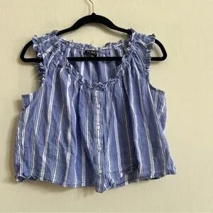 J. Crew Ruffle-trim button-up top in stripe blue white S