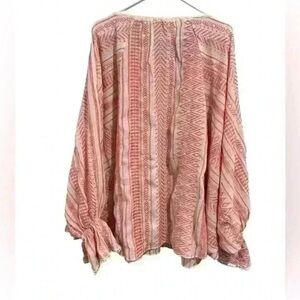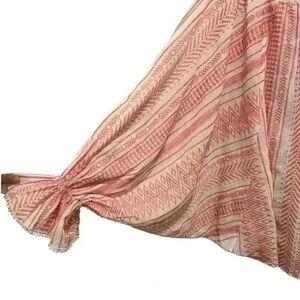 Elevate your boho-chic wardrobe with this stunning Ramy Brook peasant blouse. Featuring a signature pink and white geometric ikat print, this lightweight, flowy top is perfect for resort wear or a stylish day-to-night look.