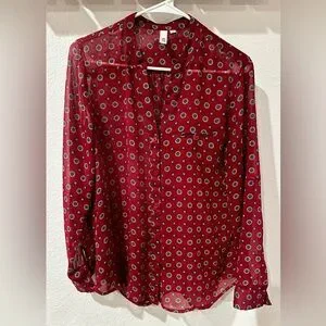 Macy’s, size-Small. Great condition. Lightweight red blouse with an all-over small floral pattern. Soft, flowy fabric that drapes comfortably. Versatile piece that pairs well with jeans or tailored pants.