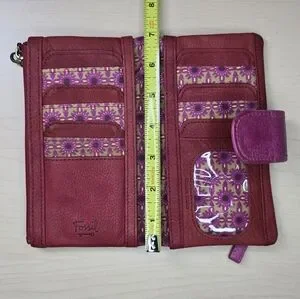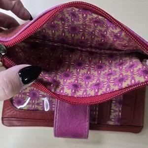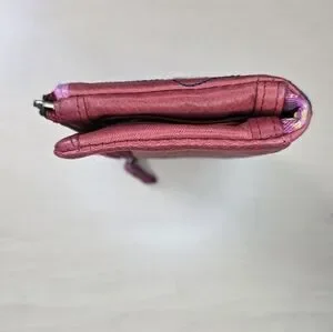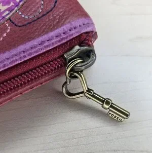 Fossil Rose Appliqué Leather Bi-Fold Wallet in Burgundy Pink