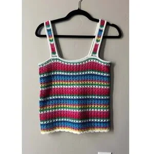 Gap Crochet Stripe Tank Top XS Multicolor Boho Resortwear Euro Summer Beach