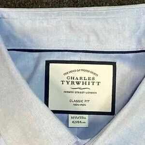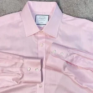 2 Chales Tyrwhitt Large Classic Fit Shirts Pink Patterned & Blue Oxford Cloth