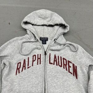 Polo Ralph Lauren Hoodie Mens Small Gray Full Zip Fleece Arch Logo Sweatshirt