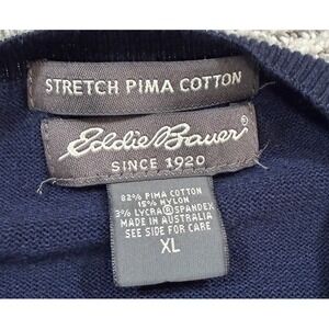 Eddie Bauer Knit Sweater Mens XL Navy Blue Pima Cotton Nylon Casual Pullover