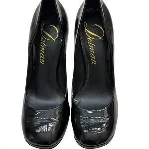 DELMAN black patent leather Bonnie heels size 8.5M