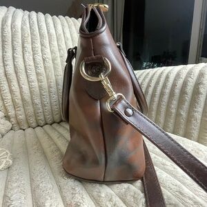 Liz Claiborne Brown Leather Dome Satchel Shoulder Bag
