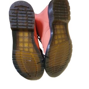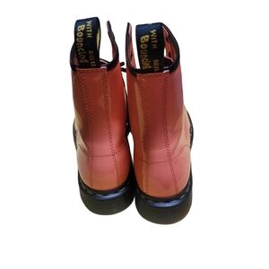DR. MARTENS 1460 Women's Patent Leather Lace Up Boots in the color Coral