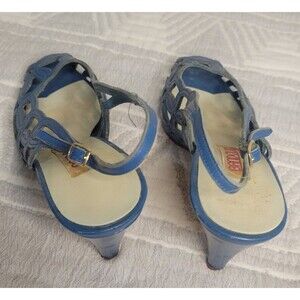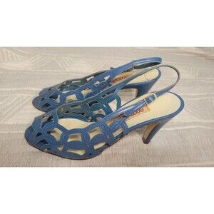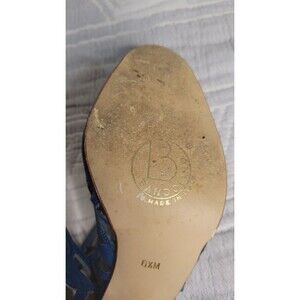Stylish Bandolino slingback heels. Open-toe with decorative cutout straps. Medium heel for dress or casual wear. Easy slip-on design with buckle detail.