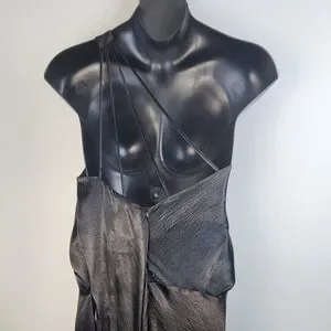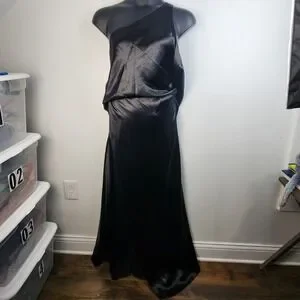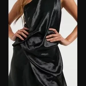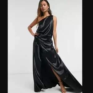 Elegant one-shoulder maxi dress by ASOS. Satin finish with soft drape. High leg slit for movement. Sleek, minimalist silhouette. Perfect for evening or formal events.