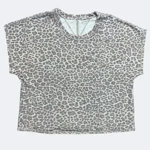 NWOT Calme Shirt Women Medium Tan Leopard Animal Print Boxy Cropped Cotton Blend