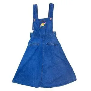 Add playful vintage charm to your wardrobe with this Vintage Landlubber Denim Jumper Dress, featuring a colorful rainbow embroidery on the front pocket and adjustable shoulder straps for a perfect fit. Made from durable denim, this retro 70's jumper is perfect for casual outings, layering over t-shirts, or creating whimsical, everyday looks. Ideal for those who love fun, nostalgic fashion, this dress is a collectible vintage piece that combines style, comfort, and durability—perfect for any fashionista’s wardrobe.