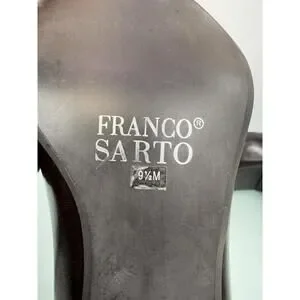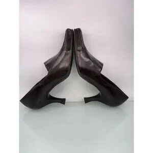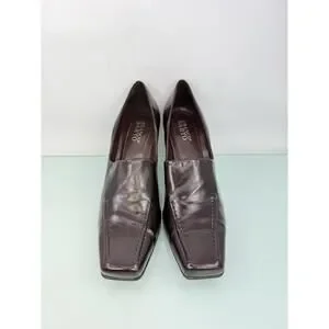 Vintage Franco Sarto Brown Leather Square Toe Kitten Heel Pumps 9.5M 90s Y2K