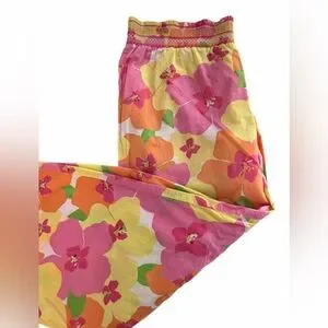 Lilly Pulitzer Womens Floral Lounge Pants- Lg, wide leg GC🩷 Cotton SPRING sale