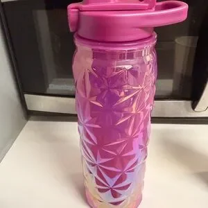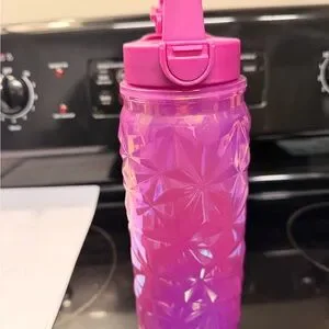 Stylish iridescent pink water bottle with a textured geometric pattern. Lightweight and easy to hold for daily use. Built-in flip straw cap for convenient sipping. Vibrant pink finish adds a fun, modern look to your routine.