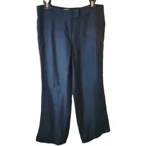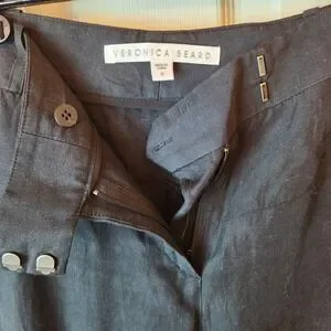 Veronica Beard Womens Size 8 Ankle Pants Black Wide Leg Linen Blend Minimalist