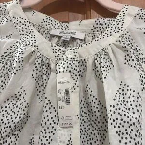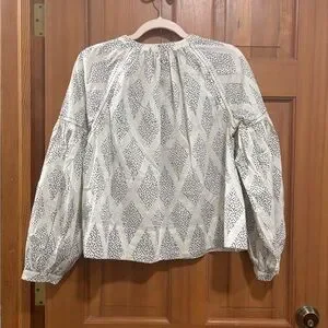 NWT! Madewell | Lighthouse Shirred Balloon-Sleeve Top in Geometric Print | S