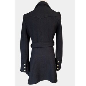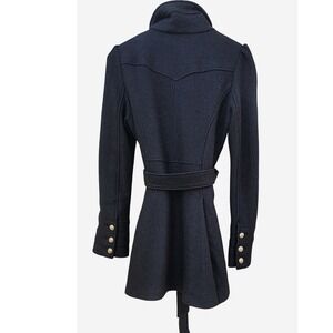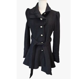 Bebe2yk Black Wool Blend Ruffled Collar Belted Peplum Coat Womens XS
