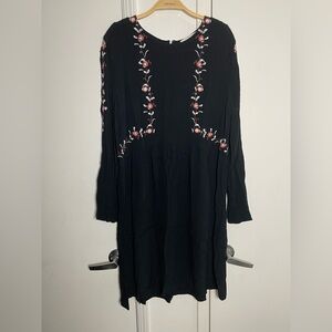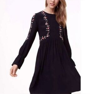 LOFT Long Sleeve Embroidered Flowing Midi Dress