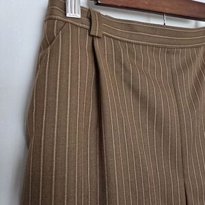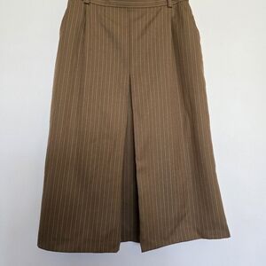Vintage, 90s, Y2K, SEVENTY, Made in Italy, Pleated, Midi Skirt, Pin Stripe, Tan, Camel, Beige, A-Line, High Waist, Pockets, Lined, Wool Blend, Suiting, Viscose, Academia, Dark Academia, Light Academia, Preppy, Office Siren, Old Money, Quiet Luxury, Workwear, Career, Autumn, Fall, Winter, Modest, School Girl