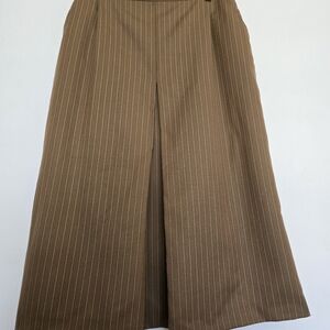 SEVENTY Venezia Vintage Tan Pin Stripe Pleated Midi Skirt 90s Academia