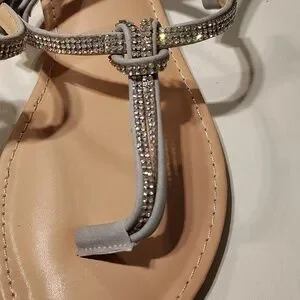 Party Festival Date Night Travel Vacation Cruise Resort Shiny rhinestone T-strap sandals by VENUS. Soft padded footbed for comfort. Adjustable ankle strap for a secure fit. Sparkling detail adds dressy appeal. (GREAT CONDITION)