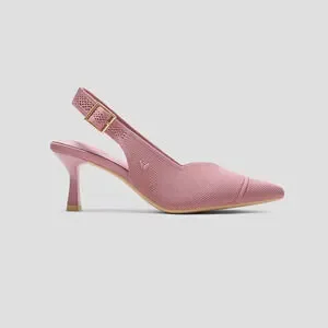 Elegant dusty pink slingback sandals with a pointed toe and slim kitten heel. Breathable textured upper and adjustable buckle for a secure fit. Versatile design pairs well with dresses and tailored looks. Comfortable, feminine style in dusty pink.
