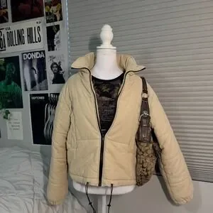 Princess Polly Beige Corduroy Puffer Jacket Women's US 2 Quilted Zip Winter Coat