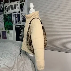 Cozy and stylish Princess Polly corduroy puffer jacket in a versatile beige tone. Features a soft ribbed corduroy exterior, quilted insulation, and a full zip front for warmth and comfort. A great neutral layering piece for fall and winter, perfect for casual wear or cold-weather outfits.