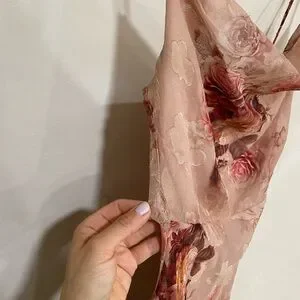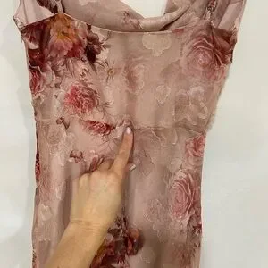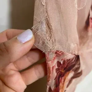 NWOT but needs repair. Tear at side seam (underarm area) + small pull on back seam. Delicate fabric so it shows. Easy fix if you sew—priced accordingly.