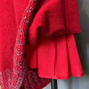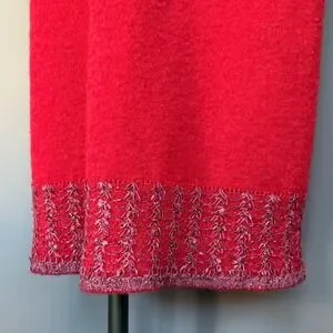 Offered is a women's vintage Chacok skirt dating to the 1980s, crafted in a luxuriously soft mohair-blend knit with a rich burgundy tone. The fabric has a fuzzy, tactile texture and features distinctive purple contrast stitching that runs along the hem in a bold 4" decorative band, adding graphic interest and period-correct flair.