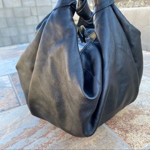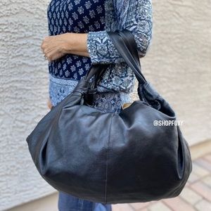 The Row Black Leather Slouchy Shoulder Bag