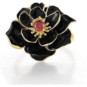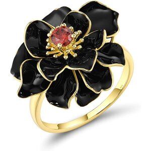 Affordable The gorgeous black lotus pattern ring is made of handmade enamel and decorated with shiny garnet cubic zirconia, so colorful and eye-catching, but the price is very affordable