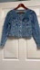 Like new!! Stylish denim jacket. It features 2 front pockets and side pockets.
