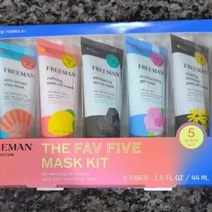 Freeman The Fav Five Mask Kit with five different masks. Includes anti-stress, refining, exfoliating, moisturizing, and cleansing masks. Perfect for sensitive skin.