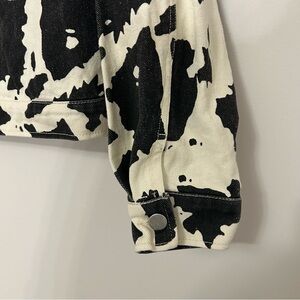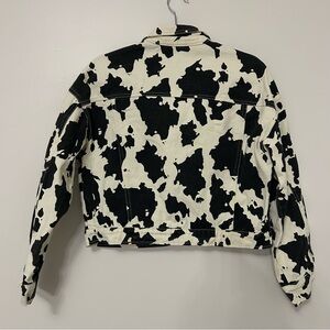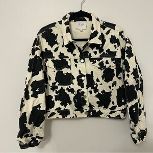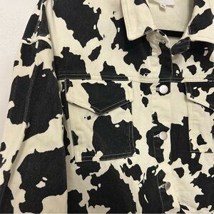 Keywords: Le Lis, cow print, jacket, buttons, black, white, western, cowgirl, country, animal print, pockets, ranch, bachelorette, bridal, Nashville, concert, festival, trip, travel, spring, summer, fall, winter, cotton, layering