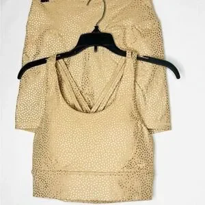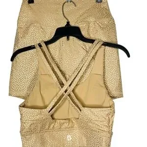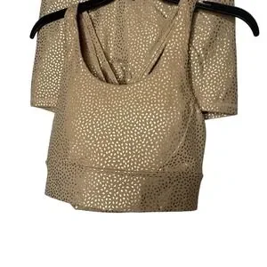 Buff Bunny Collection Womens 2 Pc Sports Bra And Short Set Sz M Yoga Athletic Gold Athleisure Running Walking Workout