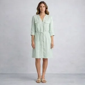 Style: Shirt dress, button front, tie waist